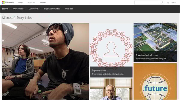 Taking a more journalistic approach, Microsoft consistently publishes high-quality stories with a focus on visual quality with each piece that they publish.